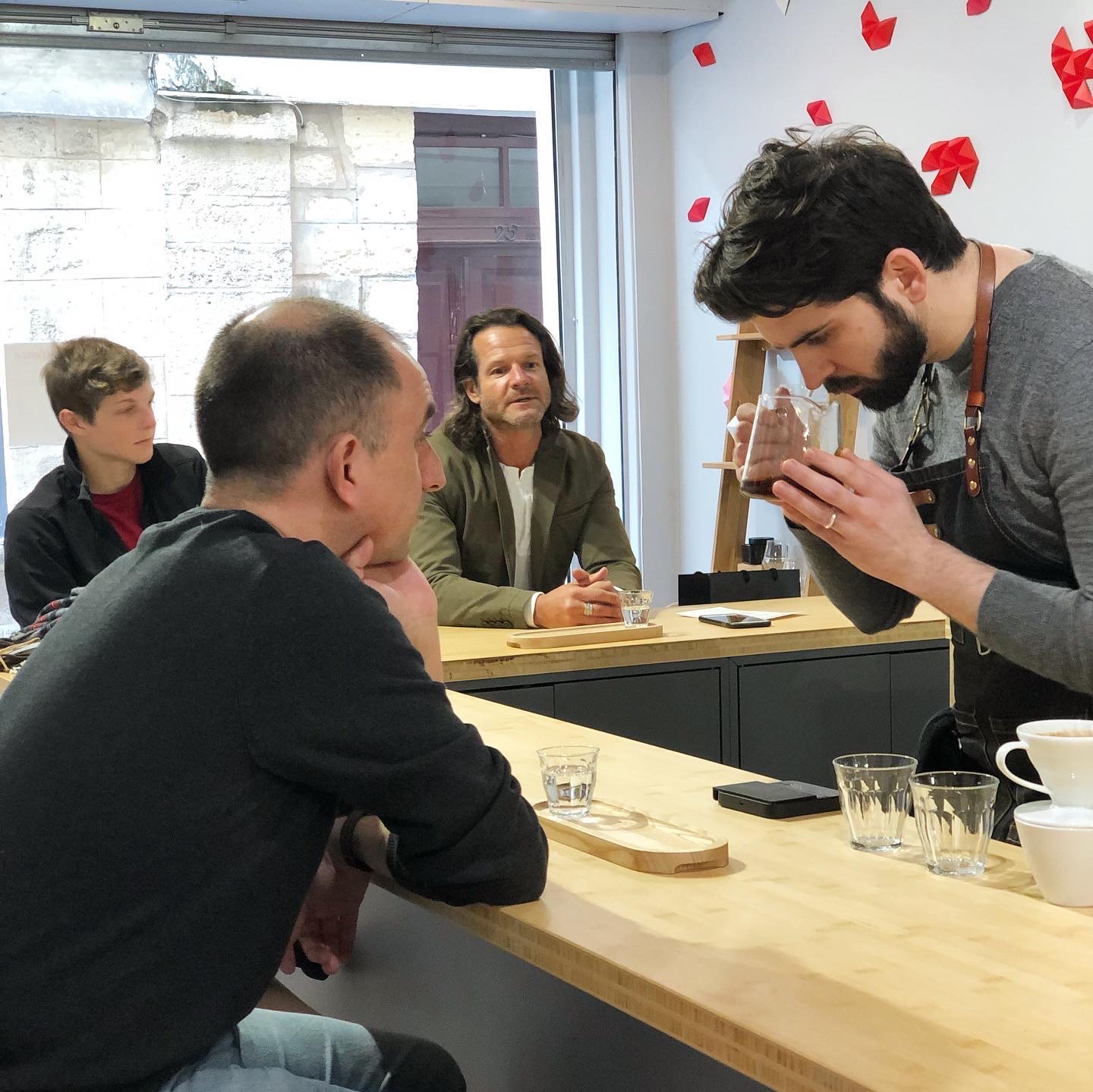 “C’est le terroir qui me guide. Je recherche à magnifier mon café, pas à coller aux goûts des gens. Mon premier client c’est la nature. Quand un café est respecté je peux alors le proposer à mes clients, et des cafés aussi dingues ça se déguste. Il faut prendre le temps ; 5 ou 10 min dans la journée pour soi ça fait du bien. Et pas de sucre, car si les acteurs du café ont fait leur travail, le café sera naturellement sucré.”