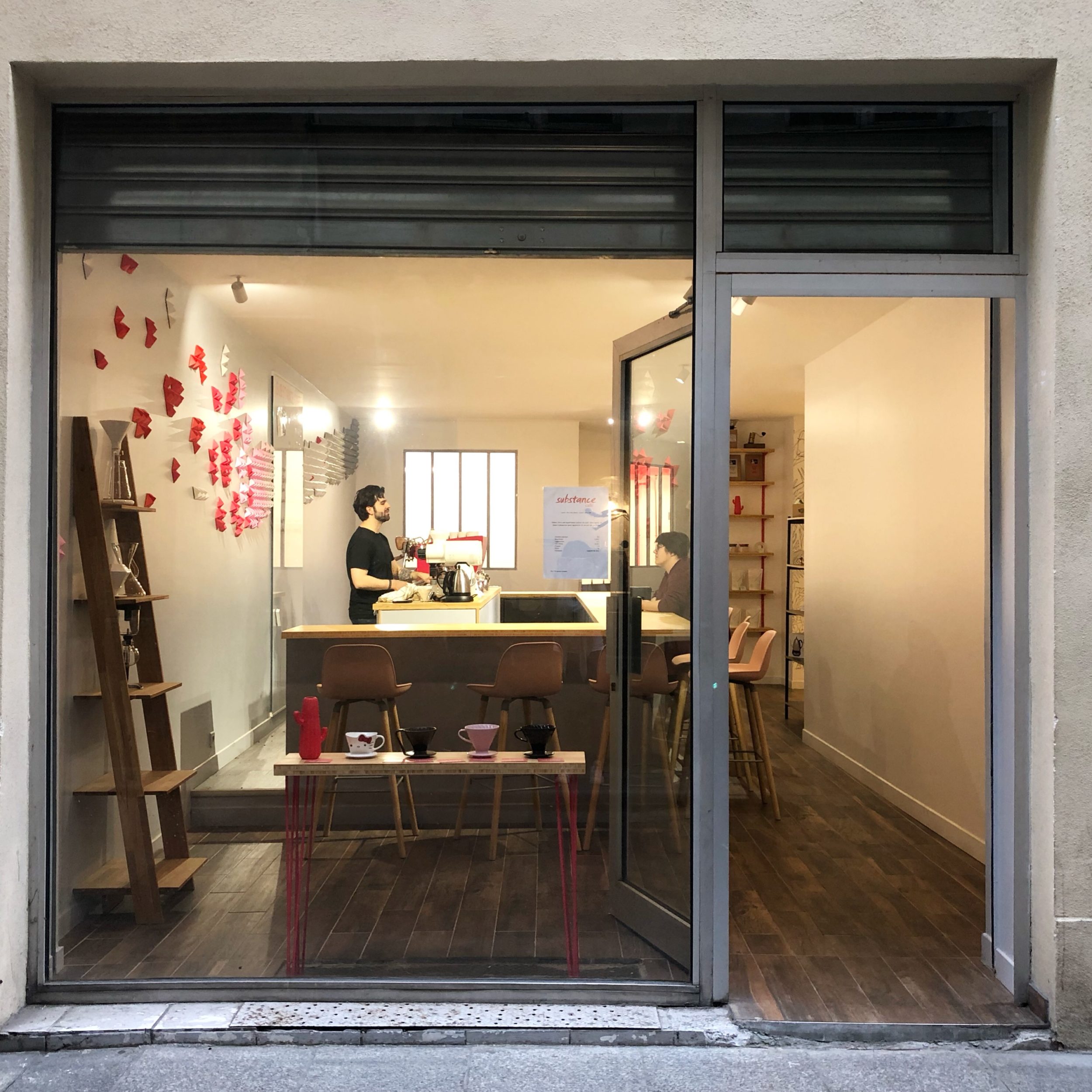 L’idée de Substance Café est venue à Joachim au milieu des années 2010, au sortir d’un restaurant coréen. L’endroit n’est pas très grand, un bar en U accueille 11 places en fond de salle, et la question de savoir pourquoi les propriétaires ne remplissent pas l’espace vide avec d’autres tables s’efface lorsque le couple s’assoit devant le chef, qui s’agite, travaille, bouge dans tous les sens. Aucune autre place dans le restaurant n’aurait permis cette incroyable proximité avec le maitre de maison. Joachim se promet de reproduire cette mise en place invitant au partage, lorsqu’il ouvrira sa propre adresse dédiée au café.